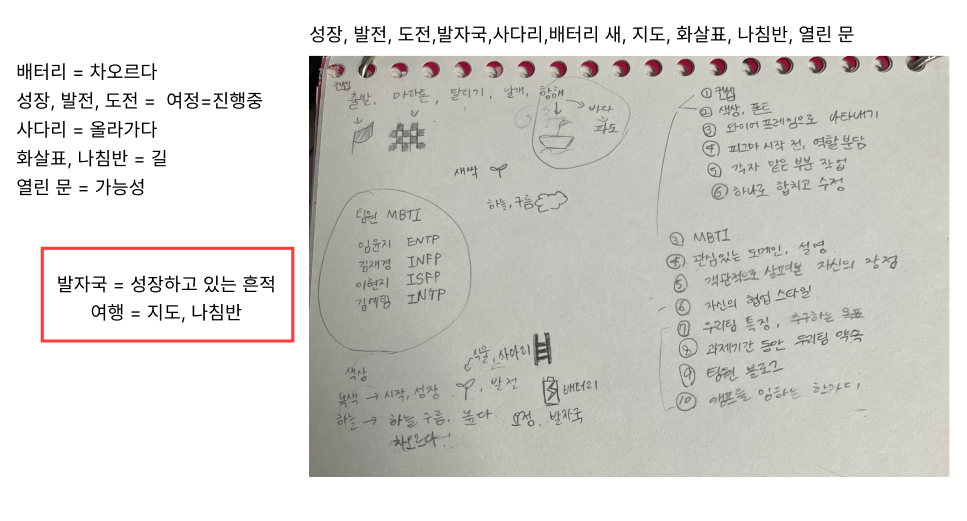 참고로 본인의 의견은 성장, 발전, 도전이였다. 팀명이 출발이다보니깐 성장과 발전 그리고 도전이 와닿은것 같다.