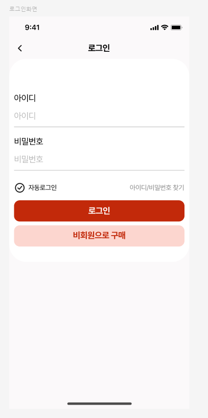 상대적으로 버튼계층이 높은 로그인을 더 눈에 띄게하였고 비회원으로 구매를 더 낮은계층으로 하였다.