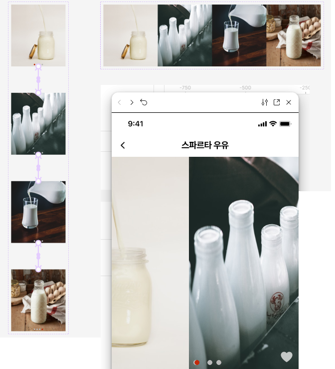 만든 프레임들을 모두 선택한후 컴포넌트셋화 한다. 그다음 그 컴포넌트의 인스턴스를 가져온후
