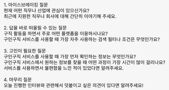 여기서 인터뷰 목적은 구인구직앱에 대한 문제발견이고,