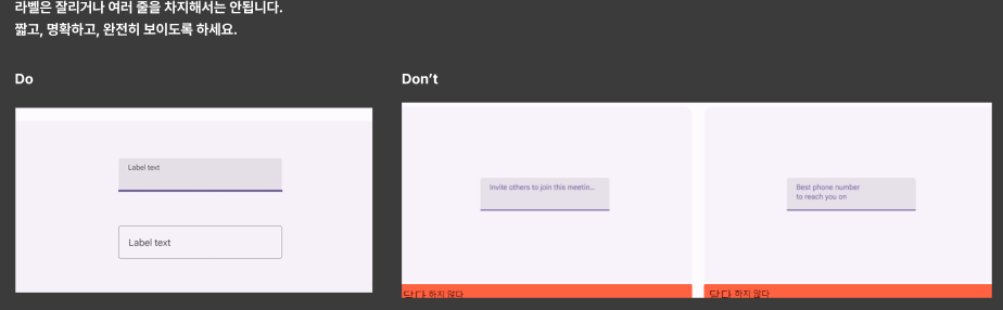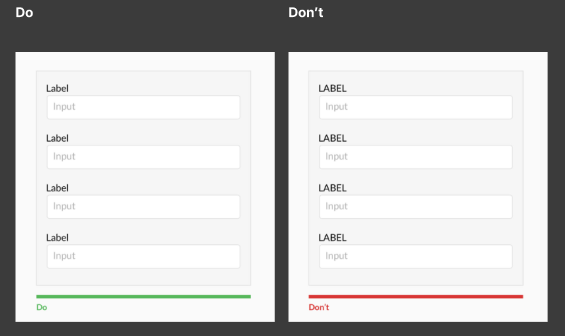 먼저 라벨을 적을때 적절한 대소문자 사용유무에 대한 Do&Don't이다