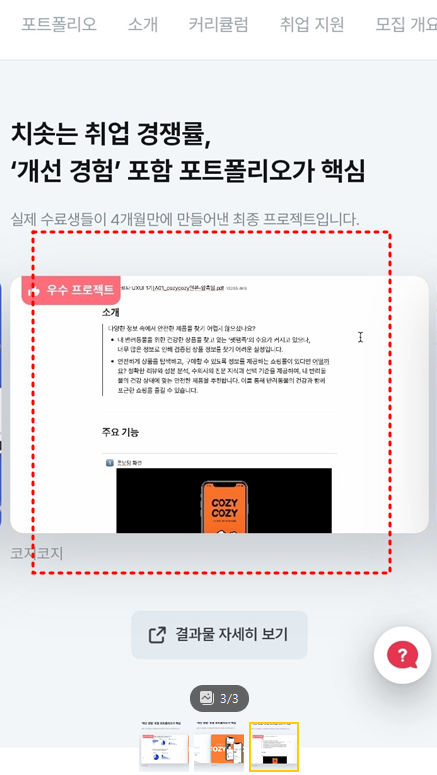 진행을 하면서, 후속질문에는 없었지만 이때 이 사용자가 왜 이런 행동을 헀는지 물어봤을때 생각지도 못한 인사이트가 나올때도 있었다 그 예로 내일배움캠프의 UXUI 사전알림신청 모바일웹 사이트를 들어가면 아래 포트폴리오에 결과물이 나와있다.