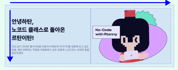 이럴때 구역을 나눈다고 하면, 일단 제일 부모섹션으로 볼때는 자식들이 가로로 되어있으므로 Flex에서 가로방향으로 추가를 한후, 그다음 자식들안에 있는 요소들은 세로로 배치되어있기 때문에 flex에서 세로방향으로 추가를 하면 히어로 구역잡기완료이다.