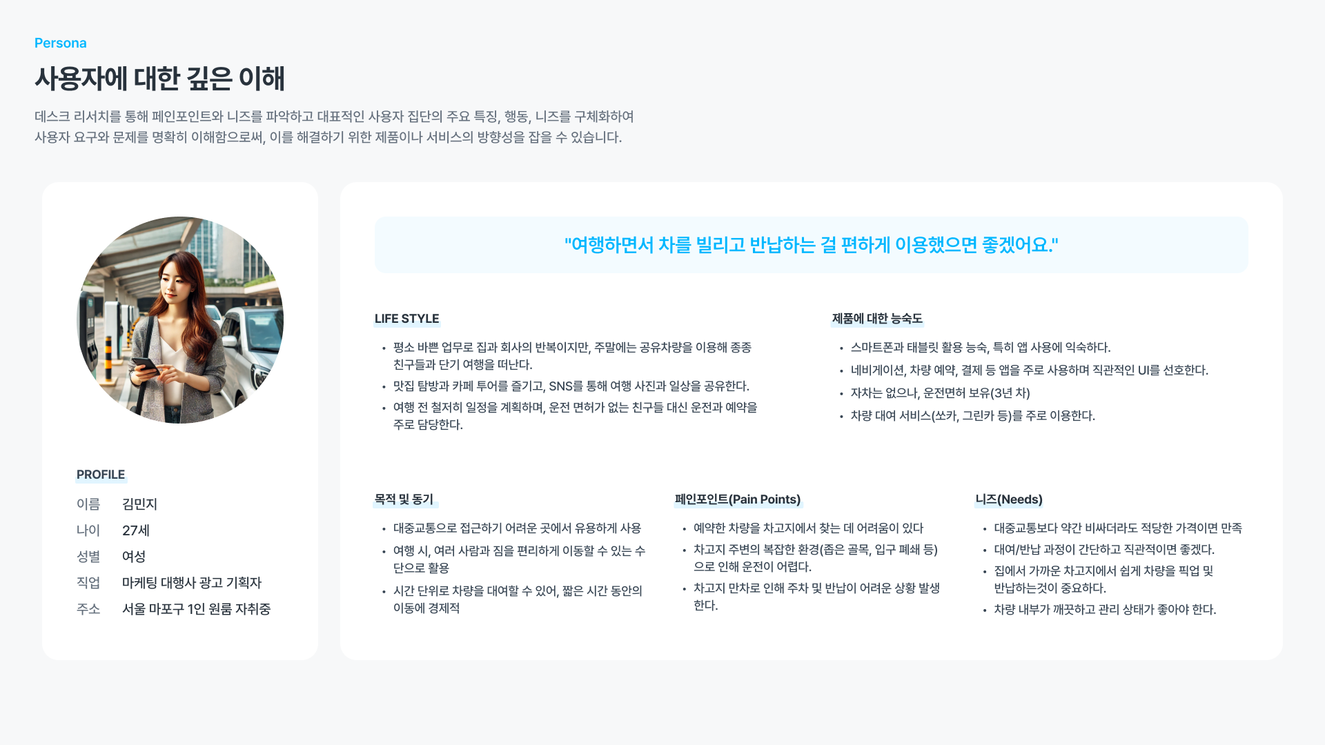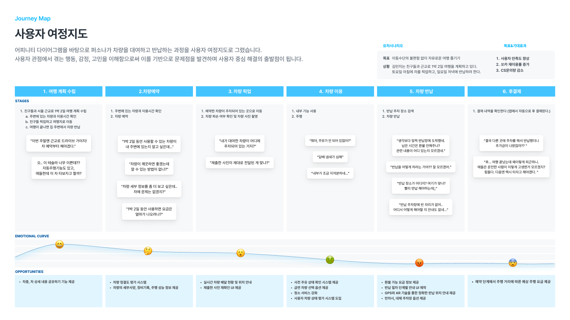 작성을 하였고, 퍼소나를 기준으로 사용자 여정지도를 작성
