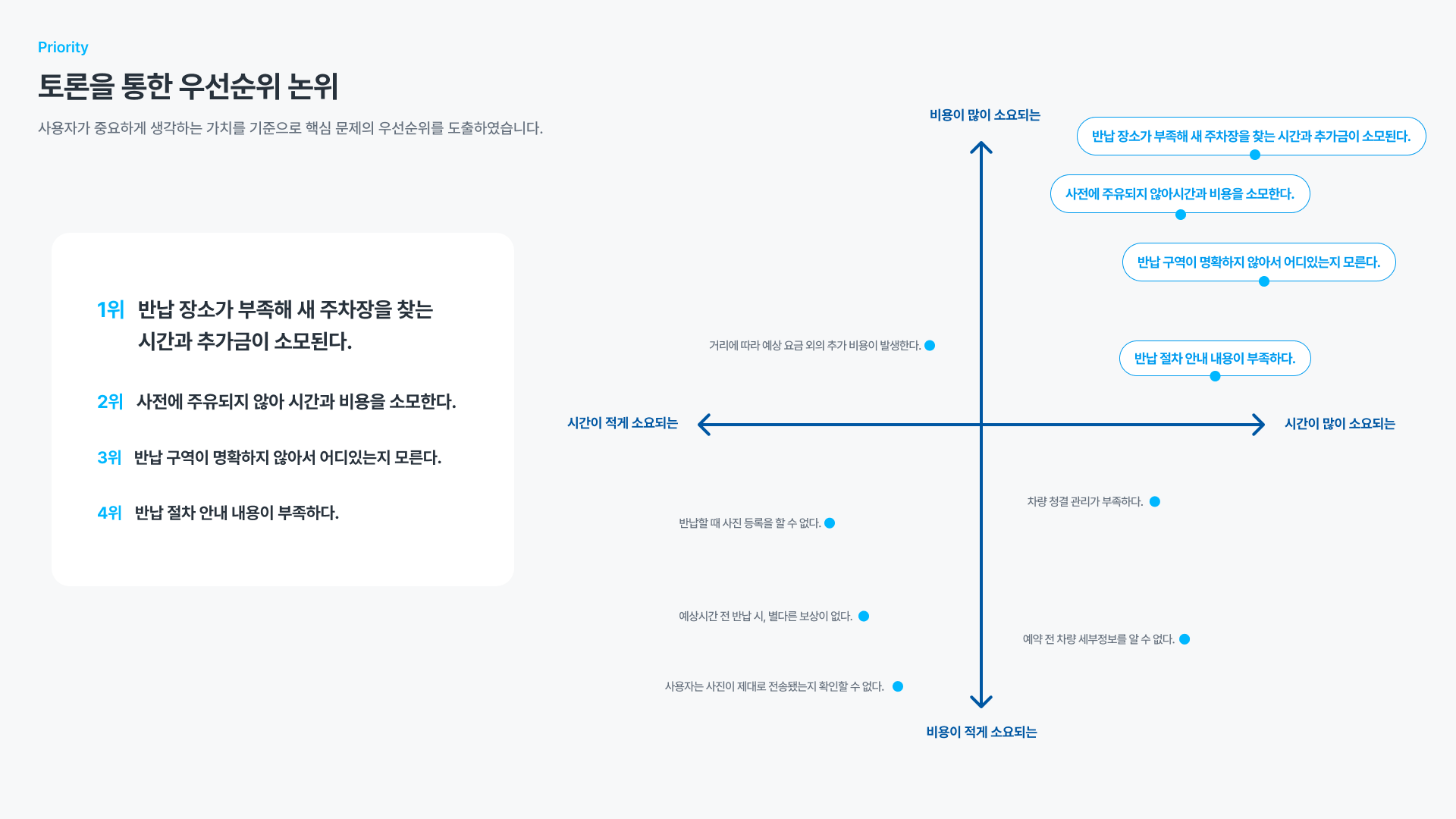해결해 준다면 이런 기대 효과가 있을 것 같다. 라는 식으로 토론을 하면서 순위를 정해볼 수는 있으며, 그래서 그 내용을 기반으로