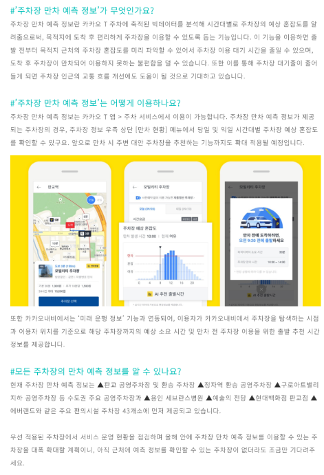 실제로 카카오 T 주차에서 축적된 빅데이터를 분석해 주차장 만차 예측 시스템을 도입중이다.