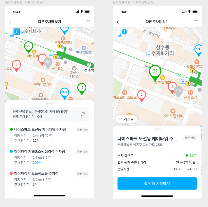 1.내 예약페이지의 실시간 주차가능면 안내 및 반납 장소 근처 주차장 찾기 UI 추가