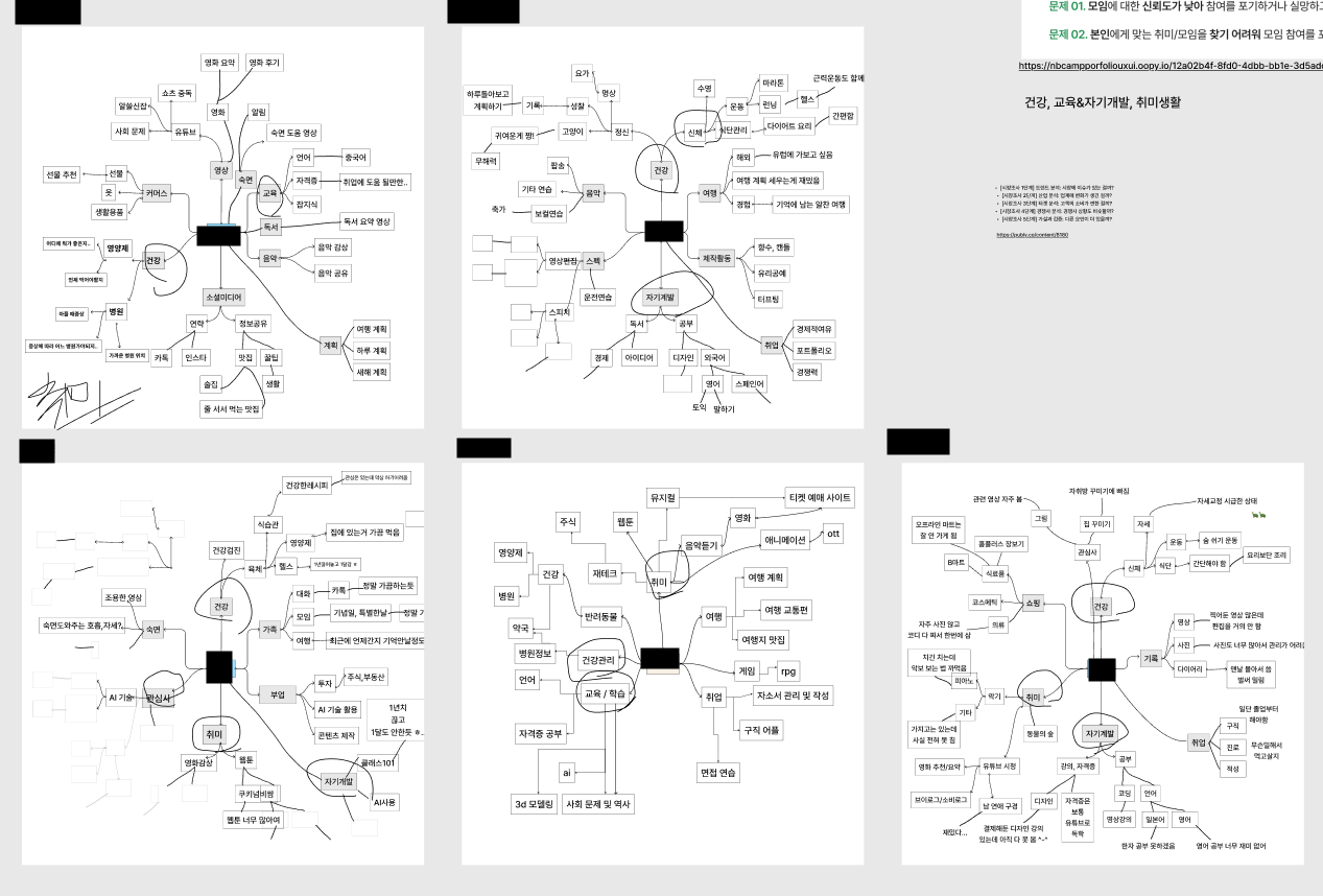 먼저 처음부터 돌아가기로함 각자의 관심사를 마인드맵으로 적고 그중에서 공통적인 부분을 찾음